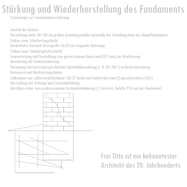 Профессиональные услуги по восстановлению фундамента и ремонту дома от трещин.Почему важно своевременно восстанавливать фундамент? Фундамент – это основа любого здания, его прочность и долговечность напрямую зависят от состояния этой конструкции. Трещины в стенах, перекосы дверных и оконных проемов, проседание полов – все это может быть следствием повреждений фундамента. Игнорирование таких проблем может привести к серьезным последствиям, вплоть до разрушения дома